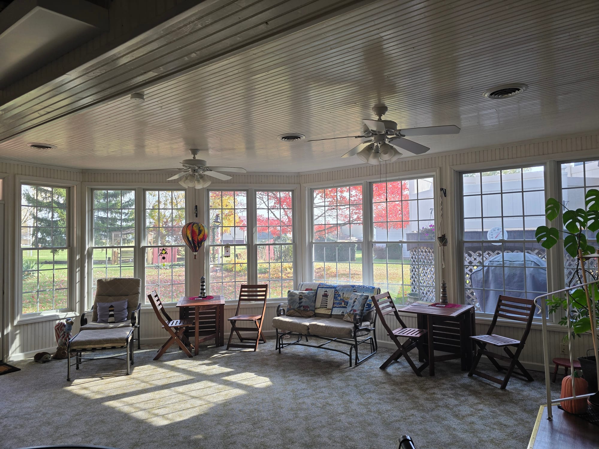 Gather in our spacious sunroom with additional seating with a view of the garden to wind down your day. Or dine in the sunroom any time of the day for a carry-in meal from one of our fine establishments around town.